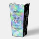 ¡Celebren su 43° aniversario de boda opal (y una historia de amor digna de una película) con estas elegantes cajas de favores al estilo de palomitas! Las elegantes letras con confeti hexagonal sobre telas opales iridiscentes bordeadas por paneles negros añaden un toque memorable para esta ocasión especial y un hito extraordinario. Personaliza con los nombres de la pareja, fechas de matrimonio y mensajes. Diseño © W.H. Sim. Ver más en zazzle.com/expressionsoccasions