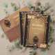 Elegante emblema del corazón de lujo.El diseño presenta un marco dorado ornamentado y arcado contra un fondo marrón degradado. El marco está muy bien decorado con flores de estilo barroco. Desde la parte superior del arco se colgan delicadas cadenas doradas con lágrimas. En el centro inferior, un marco dorado más pequeño, de estilo similar, muestra un emblema rojo del corazón flanqueado por serpientes aladas. El ambiente general es lujoso y decorativo.