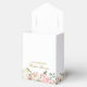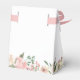 Un elegante ramo floral de peonías rosadas y rosas marfil enmarca la parte superior de esta encantadora caja de favores para la fiesta de despedida de soltera de primavera. Las ramitas de hojas de salvia decoran en medio de la variedad de flores melocotón que rodean la hermosa escritura dorada personalizada para una novia sonrojada en su fiesta de té.