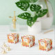 Unas elegantes cajas de regalo florales de otoño para agradecer a sus invitados. Lleno de naranjas y amarillos con algo de verde.