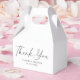 Haz que tu elegante despedida de soltera en blanco y negro sea completa con estas cajas de favor con forma de gable y letra manuscrita. La fuente fluida añade un toque de sofisticación moderna perfecto para cualquier tema minimalista o simple de despedida de soltera. Tus invitadas adorarán recibir sus favores en estas cajas únicas. El diseño de letra es llamativo pero simple, lo que hace que estas cajas de favor sean ideales para cualquier novia que busque favores de despedida de soltera que sean elegantes pero no demasiado ostentosos. Coloca un pequeño regalo o un dulce dentro y observa cómo se iluminan las caras de tus invitadas cuando reciban estas cajas para guardar recuerdos. Son del tamaño perfecto para contener una vela, una galleta, joyas o cualquier pequeño recuerdo de tu día de despedida de soltera. El diseño de letra es lo suficientemente neutral como para complementar cualquier decoración de la despedida de sol