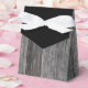 Elegante caja de bienvenida rústica de bodas de madera de granero. Puedes cambiar el color de fondo de la solapa y el arco, y agregar texto a esta bonita caja de favores de bodas en madera de granero.