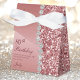 Estas elegantes cajas de purpurina de oro rosa y de favores de 80 cumpleaños son perfectas para los favores de tu pareja o de tu ser querido por los ochenta años. Son modas, modernas y de diseño, al mismo tiempo que elegantes. Las fuentes modernas y tradicionales son nítidas y limpias y hacen que estas cajas de agradecimiento sean únicas y únicas. Estas cajas brillantes y glamurosas están decoradas por todos lados. Son muy fáciles de personalizar y de hacer el tuyo. Seleccione "Personalizar esta plantilla" y escriba su información. En segundos verás tus hermosas cajas de favores.