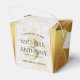 ¡Celebra su tercer aniversario de boda de cuero con estas elegantes cajas de favores! Las elegantes letras con detalles hexagonales dorados sobre un lujoso fondo de cuero blanco rodeado de Relieve metalizado dorado añaden un toque memorable a esta ocasión especial y a este hito. El panel inverso muestra un diseño idéntico. Personalizar con los nombres de la pareja, fechas de matrimonio y mensajes. Diseño © W.H. Sim. Ver más en zazzle.com/expressionsoccasions