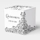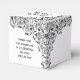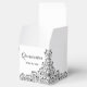 Las cajas favoritas de 2" x 2" x 2" cuentan con un elegante diseño de encaje de remolinos negros, flores y hojas, tu nombre en la parte superior, Quinceañera en la parte delantera y un mensaje de agradecimiento personal en la parte posterior. Cambie las fuentes, los colores de las fuentes, la redacción e incluso el color de fondo. Invitaciones que coincidan y más en nuestra tienda —> http://bit.ly/2JGREwA <—