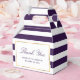 Personalice fácilmente estas cajas de favores de boda violeta a rayas con los detalles de su boda. Estas cajas de agradecimiento personalizadas se pueden personalizar para otras ocasiones, como cumpleaños, novias o duchas para bebés.