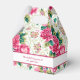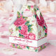 Una caja de favores matrimoniales con un elegante diseño floral de rosas vintage.