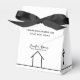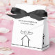 Esta moderna caja de favores del personalizado inmobiliario es la manera perfecta de felicitar a un comprador de vivienda por su nueva compra o de regalarla durante una casa abierta. Felicidades por tu nuevo hogar o por un mensaje personalizado diferente para el marketing en casa abierta. Estas minimalistas cajas blancas y negras cuentan con un simple dibujo de una casa para un negocio de agencia inmobiliaria simple y de moda.