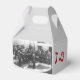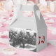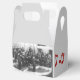 Caja de favores de estilo grisáceo con la imagen de una orquesta Big Band en la parte delantera, y el título de una de las más grandes canciones de Glenn Miller, "In the Mood." en barras de música roja en la parte trasera. Los lados tienen dos notas de música roja. Vea la invitación, sobre, gran bolsa de regalo, etiqueta, pegatina de guardar la fecha, pegatinas de vinilo cortados por personalizados y papel de envoltura. Ver la colección Patriotic 40s Favor Box en los TOUCHES ESPECIALES | Sección de favoritos de partido.