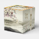 Encantadora y bucólica escena con flor de cerezo, pájaro, lago como fondo + papel-corte de una rata con sombra de gota + Feliz Año Nuevo en chino + 2020. Diseño en caja cubo clásica + fondo dorado (superior) + deseos en inglés (al personalizar si lo desea). Disponible en otros estilos: gable, tienda de campaña y salida. Coincidiendo con la tarjeta de saludo, las invitaciones y más... Perfecto para un romántico Año Nuevo Chino de la Rata 2020.