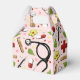 Casilla de favores creativa de la fiesta con temática médica que incluye suministros de salud hospitalarios y flores para la celebración de enfermeras, médicas o asistentes médicos.