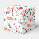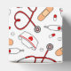 Enfermera de amor Imprimir caja de favores con Gorra de enfermería, estetioscopio cardíaco, venda y medicación de fondo blanco.