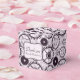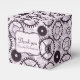 Un elegante y sencillo equipo de vigilancia negro inspirado en el steampunk y un patrón de damasco morado de lavanda. Presenta aquí como una caja de regalo de "gracias" con opciones de nombres
