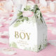Una elegante caja de regalo para baby shower de niño con follaje verde y tipografía dorada chic. Puedes personalizar con tu propio mensaje de agradecimiento debajo de la tapa. ¡Una forma perfecta de dar las gracias a tus invitados! Diseñado por Thisisnotme©