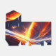 Naranja amarillo brillante fuego estrellas de agua azul oscura diseño espacial.