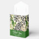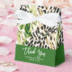Cajas de favores con estampado de huellas de piel de animales de safari y hojas de palma chic boho