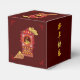 Diseño de palanquín chino estilizado llevando un papel dorado cortado de una rata con su ideograma dorado + saludo chino + 2020 + marco rojo chino + nubes despiadadas. Diseño en la caja de favores del cubo con fondo rojo oscuro. Puede cambiar fácilmente el color de fondo y la posición de todos los diferentes elementos del diseño haciendo clic en el botón personalizar. Tarjeta de saludo, invitación, pegatina, bolso de regalo y más... Perfecto para el Año Nuevo Chino de la Rata 2020.