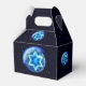 Una imagen fractal de color azul y púrpura de una Estrella de David en círculo.