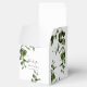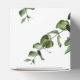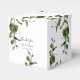 Este diseño presenta hojas rústicas de eucalipto. La vegetación del eucalipto se complementa con un elegante texto negro. Los colores verde polvorientos de la hoja de eucalipto crean un ambiente rústico de jardín de bosques de campo. Elegante diseño de caja de favores de boda con elementos modernos. También hay disponibles invitaciones de boda coincidentes y otros artículos de papelería.