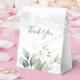 Bonita caja de favores matrimoniales con eucalipto acuarela y hojas de oro.