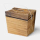 Personalice la encantadora Caja de Favor de la Boda Occidental de Girasol Barn Wood Country Faux y llene con los favores de la fiesta o pequeños regalos para los huéspedes que asistan a su casual pero elegante granja rural o celebración de compromiso al estilo de rancho, ducha de novia fiesta granero o recepción matrimonial. Estas elegantes e informales cajas de personalizados de imitación de madera cuentan con una pintoresca fotografía floral de grano de madera marrón, flor de girasol amarillo y un par de botas de vaquero de cuero marrón.