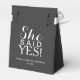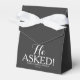 Casilla/Tienda de Favor para Novias o Ducha de Parejas o Recepción de Bodas con Él preguntado, Ella dijo texto delante y atrás. Personalizable fácilmente con el botón personalizar, cambia el fondo y el texto a cualquier color que desee.