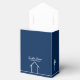 Esta moderna caja de favores del personalizado inmobiliario es la manera perfecta de felicitar a un comprador de viviendas por su compra nueva. Felicidades por tu nueva casa o por un mensaje personalizado diferente para el marketing de la empresa abierta. Estas minimalistas cajas azul marino y blanco presentan una línea simple de una casa para un simple negocio de agencia inmobiliaria de moda.