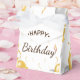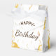 Esta hermosa caja de favores Feliz Cumpleaños es la manera perfecta de celebrar tu día especial. Esta caja, hecha con cartón robusto, contiene tus dulces y golosinas favoritos. El diseño luminoso y alegre hará sonreír a todos. Texto de cumpleaños feliz decorado, con globos de oro y plata voladores, decoración de confeti dorado brillante.