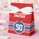 Rojo, Blanco y Azul - Este diseño de franjas deportivas y de carreras es perfecto para cualquier atleta que juegue hockey, fútbol, fútbol o béisbol. Cambias los números a tu número de suerte o incluso una edad especial para una celebración de cumpleaños. Un diseño escarpado y masculino con un área para cualquier fecha de aniversario - 5, 50, 70 u otro!