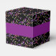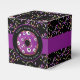 Nuestra linda caja de favoritos Donut de la Morada de Halloween Googley Monster contiene un ilustracion acuarela de un espeluznante donut dulce con esbelta espuma violeta y unos ojos espeluznantes de googley sobre un divertido fondo de rociado de color. Personalizar el texto para crear una divertida caja de favores de Halloween para tu próxima fiesta de Halloween.