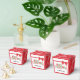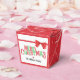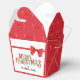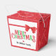 Para tus Navidades favores y comida para llevar, elige estas cajas de favores, diseñadas en rojo y verde, con el mensaje Feliz Navidad y un campo de texto para añadir el nombre de tu familia o compañía, estas cajas son perfectas para pequeños regalos, deliciosas mordeduras dulces o amargas, o favores de fiesta. Una coqueta de arco rojo dibujado a mano con pequeños corazones decora con gusto la parte delantera y la parte trasera de las cajas.