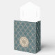Una pequeña bolsa de té en un verde-azul para los dueños de tiendas y panaderos para empaquetar panaderías pequeñas o productos de comida como caramelos o chocolates. Perfecto para los amantes de las medias. Especialmente agradable para los jardineros con su delgada flor y su fondo de láminas con motivos de hojas.