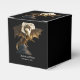 Una caja de favores con un intenso dragón dorado criando con la luna llena en el fondo. El eslogan 'Alas de poder, corazón de fuego' rodea la imagen. Una gran imagen para una pareja que disfruta de la fantasía. Contiene contenido generativo.