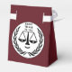 Regalo de favores de fiesta de abogados humorísticos con características creativas de balanzas de justicia personificadas y cita divertida.