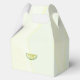 Entrega de paquetes y favores o empaca las deliciosas sobras para llevarse en estas coloridas cajas de favores del Partido Cinco de Mayo. El fondo de la decoración es de chile rojo acuarela, contrastado con un fondo verde claro, una tipografía vibrante en el frente con texto personalizado y una cal acuarela en la parte trasera que representa el ambiente de la fiesta mexicana. Sube una o dos plantas a tu fiesta con este divertido toque de inspiración mexicana que se añade a tu decoración de mesa.
