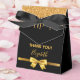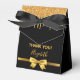 Elegante, clásico, glamuroso y de estilo giratorio. Cinta falsa de color oro y arco con goteos falsos de oro. Fondo negro. Con el texto: ¡Gracias! Personalice y agregue un nombre escrito con un guión de estilo con letras a mano moderno.