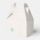 Un chico groovy con la caja de favores de la fiesta de cumpleaños Rainbow