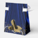 Cajas de favores de fiesta de cumpleaños para mujer con elegantes zapatos de tacón alto con purpurina dorada, hermosa cadena de perlas sobre un fondo de satén azul real rico y dorado. Estas elegantes cajas de favores de fiesta de cumpleaños azul real y dorado se personalizan fácilmente simplemente agregando el texto de su elección debajo de la solapa frontal en el estilo de fuente y redacción que prefiera. Este es un diseño impreso sin satén real, purpurina, etc.