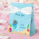 Cajón de favores para la fiesta de cumpleaños de un pequeño chica afroamericano que ama las sirenas de pelo púrpura bonito. Estas bonitas cajas fiestas cuentan con una adorable sirena negra de pelo rosado nadando alrededor de un hermoso coral oceánico. Un fiesta de la piscina infantil con un adorable caballito de mar rosa y un castillo subacuático en la parte trasera.