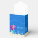 Bonita caja de favores de la sirena personalizado que cuenta con un chica de pelo rosa lindo con una cola verde azulada fresca nadando en el océano azul profundo con arena, coral y un caballito de mar. Regalo de cumpleaños de verano Guay para los huéspedes de un fiesta de piscina infantil o un luau de playa para niños.