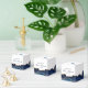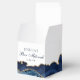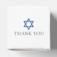 Elegante ágata azul marino y dorada decora esta moderna caja cuadrada de favores del Bar Mitzvah. El nombre de su hijo está escrito en un hermoso guión formal bajo la Estrella de David. Perfecto para una moda, elegante familia judía celebrando la llamada de un niño a la Torá.