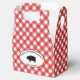 Casilla de favores del partido barbacoa con cerdo en un patrón de verificación rojo y blanco. Fácil de añadir el nombre de su empresa y el teléfono en el texto delantero y personalizado en la parte posterior utilizando la plantilla de personalización.