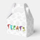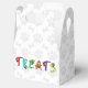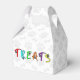 Patrón de impresión de garras de perro y decoración de fiesta de texto personalizado favorecen a las cajas. Personalizado texto colorido para celebraciones relacionadas con perros.