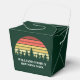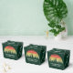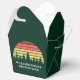 La fiesta de la puesta de sol en el bosque de Guay favorece cajas en verde para todo el grupo en una excursión por la naturaleza o en una reunión familiar de viaje de campamento. Esta caja de favores del partido personalizado presenta una hermosa puesta de sol de época sobre un bosque de árboles de bonito sobre su texto personalizado.