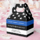Añada el toque final a su fiesta de retiro de la policía con estas delgadas cajas y suministros de fiestas del partido de retiro de la policía de línea azul. Diseño de la bandera estadounidense en los colores de la bandera de la policía, diseño azul negro moderno. Vea nuestra delgada colección de fiestas de la línea azul para igualar invitaciones de retiro de la policía, regalos de retiro de la policía, favores de la parte de retiro de las fuerzas del orden y suministros. DERECHOS RESERVADOS © 2020 Judy Burrows, Black Dog Art - Todos los derechos reservados. Fiesta de Jubilación Policial Personalizado Thin Blue Line FavBox