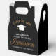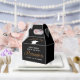 Esta moderna caja de favores del partido personalizado de la reunión de secundaria muestra el nombre de la escuela secundaria para alumnos con antecedentes negros de un alumno del 10, 20 o 30. Elegante guión dorado.