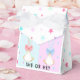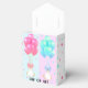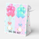 El género creativo revela los favores de la fiesta en las cajas de regalos con globos azules y rosas, bebés y estrellas.