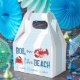 ¡Hervir en la playa! Fin de semana de soltera con mariscos hervidos con cangrejo y langosta contra un fondo a rayas azules costeras