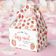 Cajero de fiesta temática de fresa con un ilustracion acuarela de la fruta roja de verano. El texto dice "muchas gracias a berry por venir a mi fiesta". Perfecto para un fiesta chica en verano.
