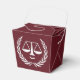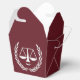 Creativo cumpleaños de abogado o fiesta de graduación de la escuela de derecho que presenta graciosas escalas de justicia con antecedentes marrones.